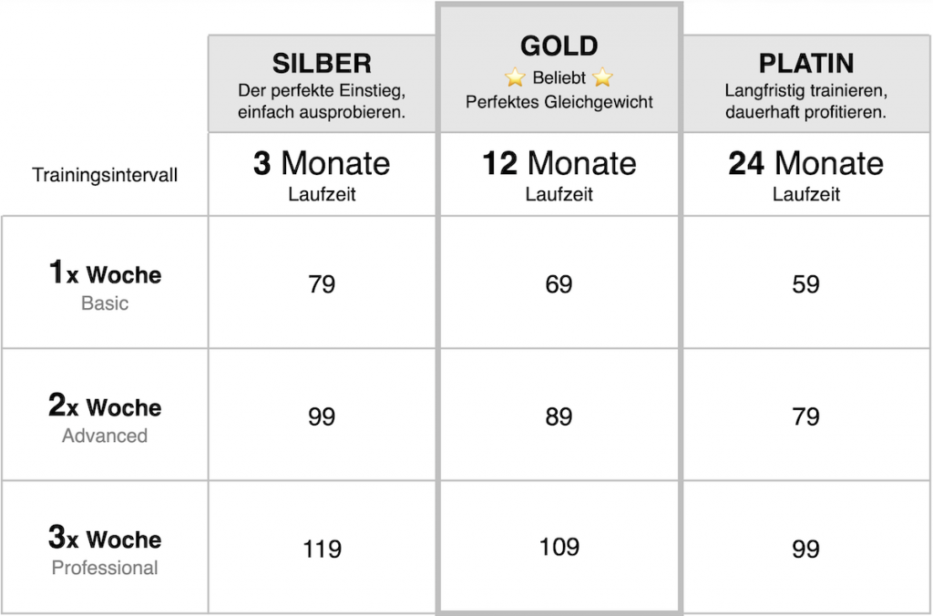 Das Training ist klar aufgebaut, sicher angeleitet und wächst mit dir Schritt für Schritt.
